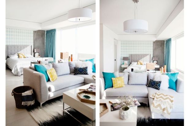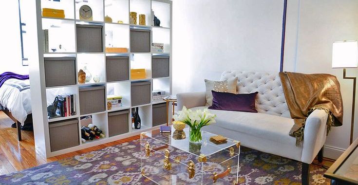 Đặt đồ nội thất gần chân giường là một cách tuyệt vời khác để tạo ra một sự tách biệt nhỏ giữa khu vực sinh hoạt và ngủ. Bạn có thể sử dụng ghế sofa hoặc bàn làm việc, hoặc cả hai như thể hiện trong gác xép siêu nhỏ đầy màu sắc và tươi sáng này. Studio của bạn có một lối đi hành lang? Giữ cho khu vực sinh hoạt chính của bạn bừa bộn bằng cách giữ cho đồ lưu trữ và trưng bày đồ đạc ở lối vào.