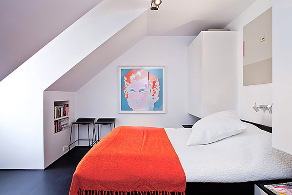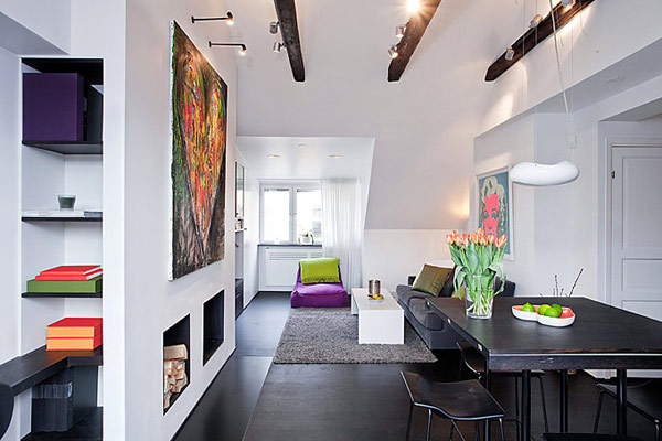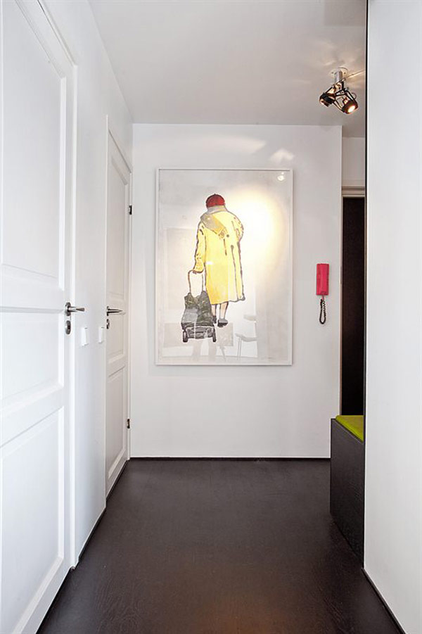 Ngôi nhà được sơn một màu trắng cho bức tường giúp cho căn hộ có cảm giác lớn hơn so với kích thước 54m2 của chính nó.