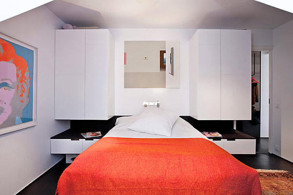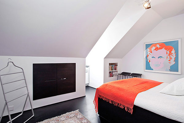 Tiếp đến là phòng ngủ vẫn là một không gian trắng trong phòng ngủ ngoại trừ mền và một tấm lót sàn nhỏ trong phòng
