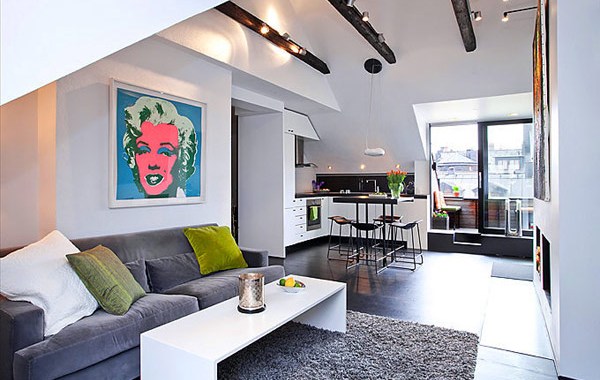 Ngôi nhà được sơn một màu trắng cho bức tường giúp cho căn hộ có cảm giác lớn hơn so với kích thước 54m2 của chính nó.
